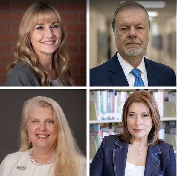 Michael Wulczyn (clockwise from top right), Caprice Garcia, Diane Sciba Villarreal, and Cheryl Ettinger are pursuing two North East ISD board positions in the May 2 elections. (Courtesy photos)