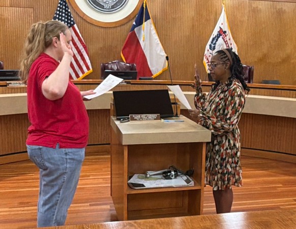 Newly appointed Converse City Councilmember Renee Paschall (right) takes the oath of office April 1. (Photo courtesy of the city of Converse)